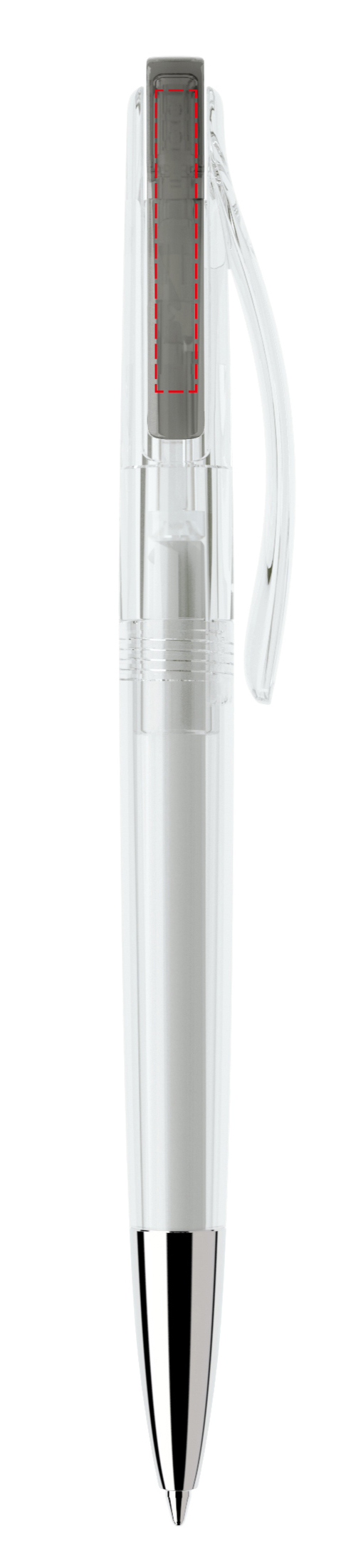 Der lang gestreckte Druckknopf verleiht ihm seine ganz individuelle Linie. Wie immer bei Prodir sind die Wände der Bauteile auf maximale Stärke ausgelegt. Das sorgt für intensiv leuchtende Farben und angenehme Schwere in der Hand. Ganz gleich von welcher Seite man den DS2 betrachtet, die Botschaft bleibt immer sichtbar. Denn beide Flügel des Druckknopfs sind bedruckbar. So lässt sich Wichtiges gleich zweimal sagen. In der Ausführung mit transparentem Gehäuse und polierter Metallspitze (PTC) lieferbar in zwei Standardfarben, hergestellt mit einem Rezyklatanteil von 50%, gekennzeichnet mit dem internationalen Recycling-Symbol. Sondergehäusefarben ab 10.000 Stück. Fünf Druckflächen für Werbeanbringungen stehen zur Verfügung. Der beidseitig bedruckbare Druckknopf ist in neun transparenten und neun polierten Farben erhältlich und kann nach Belieben kombiniert werden. Ausgestattet mit der umweltfreundlichen auswechselbaren FLOATING BALL® lead free-Großraummine 1.0, Schreiblänge 5.000 m, Schreibfarbe Blau oder Schwarz.